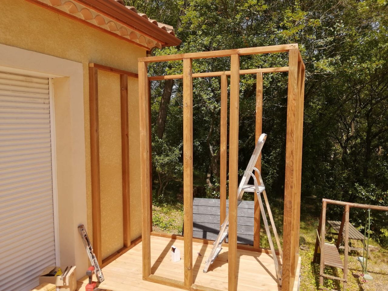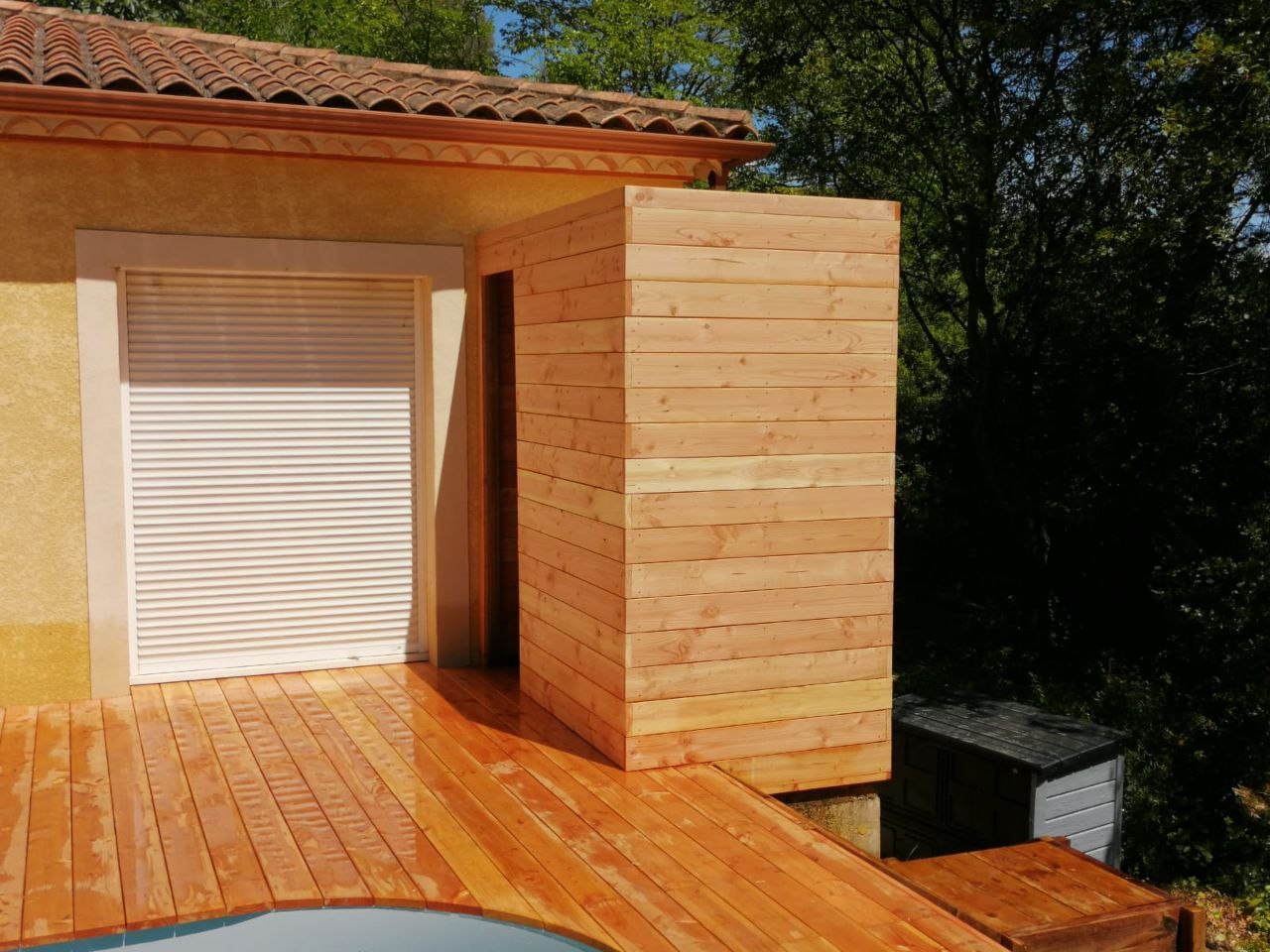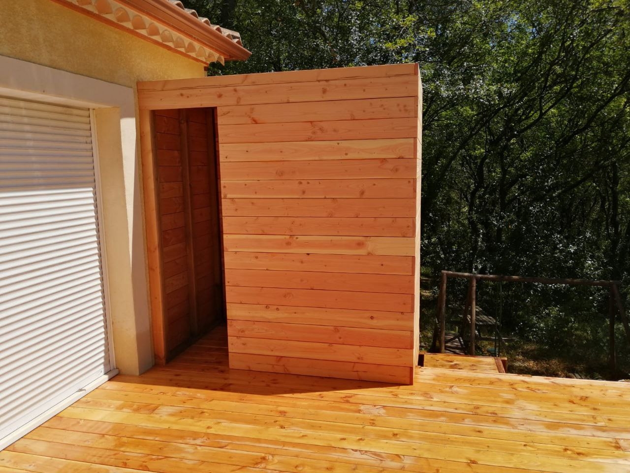Cabanon et Terrasse Le Projet Mur de soutènement, cabanon sur mesure, terrasse et escalier en bois Date : 16 juin 2021 Client : Particulier | Montferrier Projet : Aménagement extérieur À la Livraison Le Chantier En Images