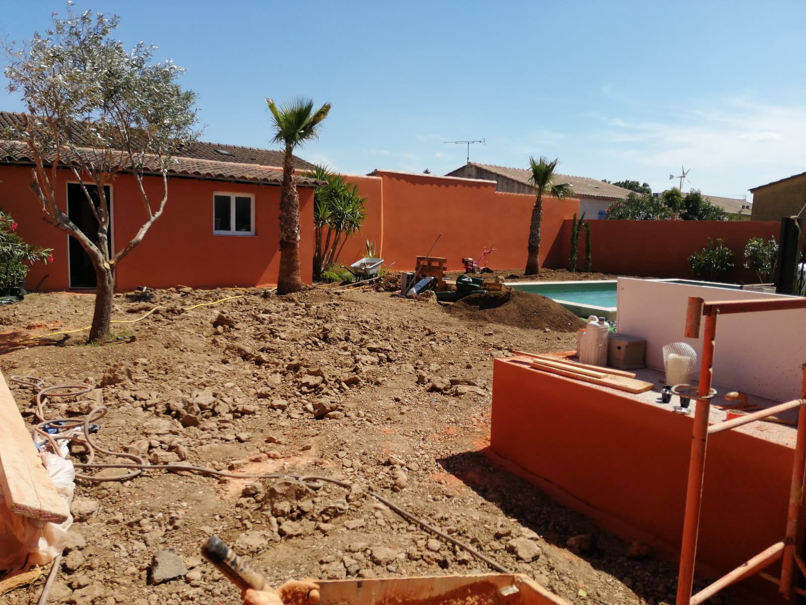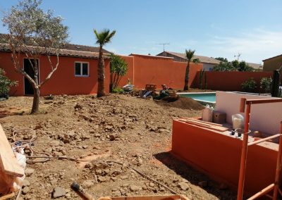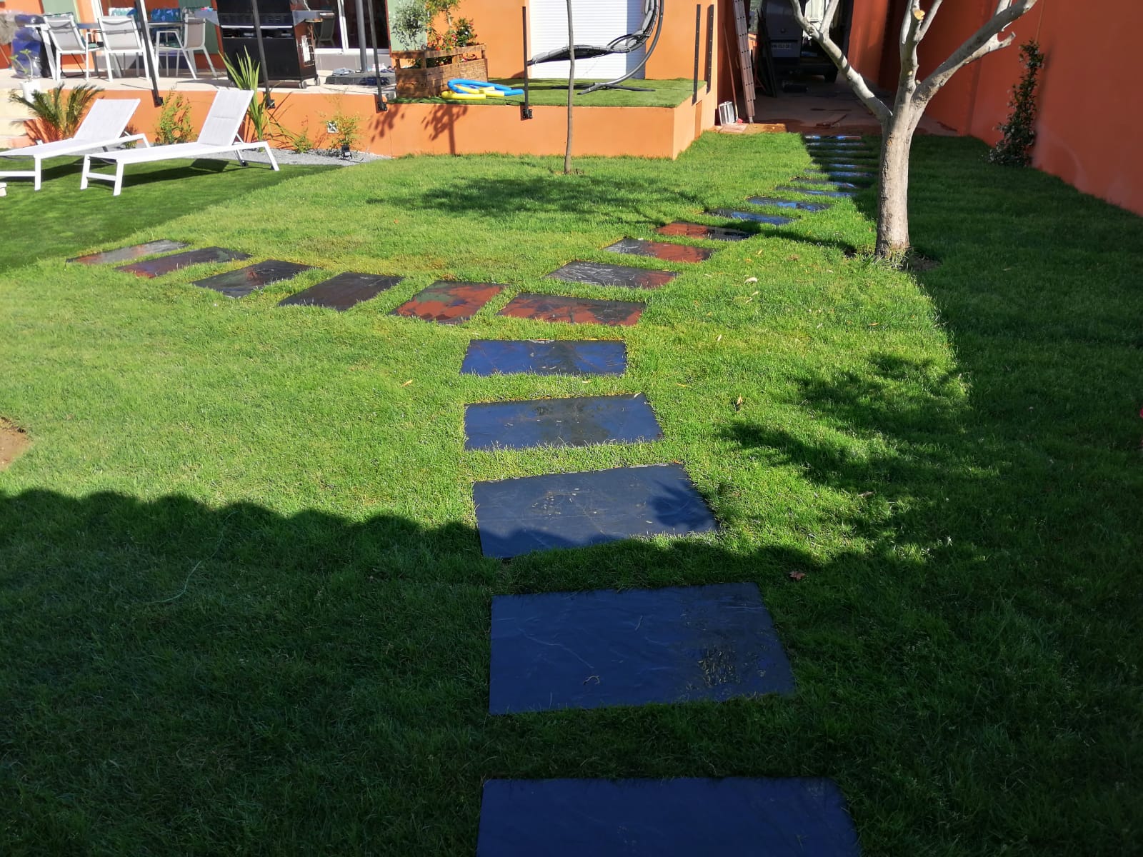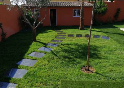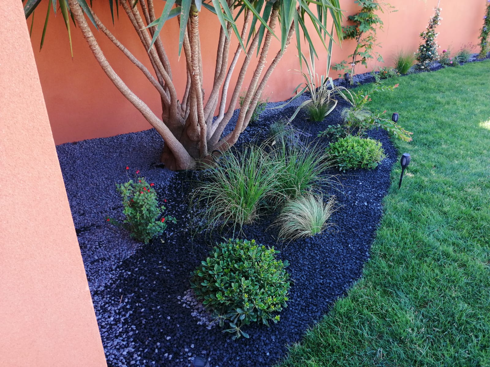 Création de Jardin Le Projet Création d’un jardin avec massif, pas japonais, transplantations d’arbres et éclairage.. Date : 27 juillet 2021 Client : Particulier | Jacou Projet : Aménagement extérieur Un an après À la Livraison Le Chantier En Images