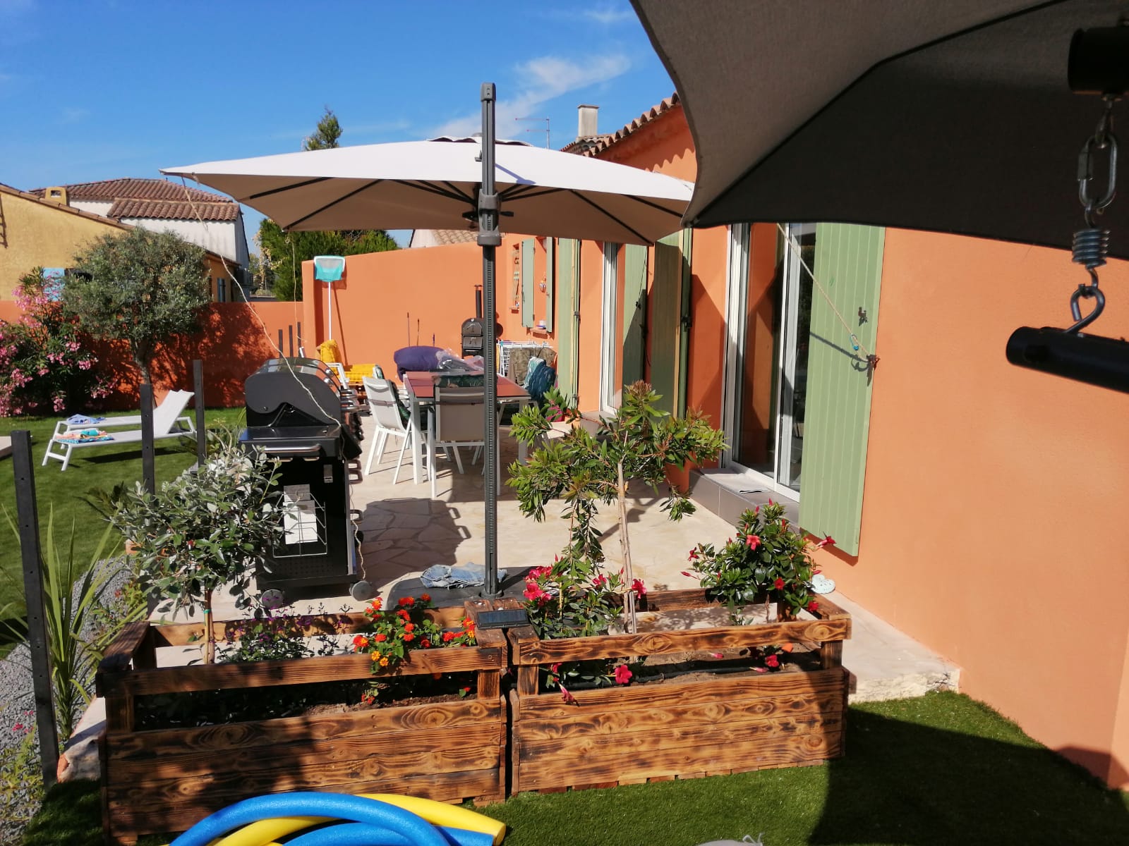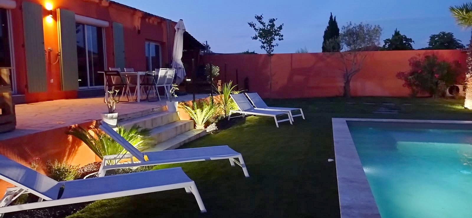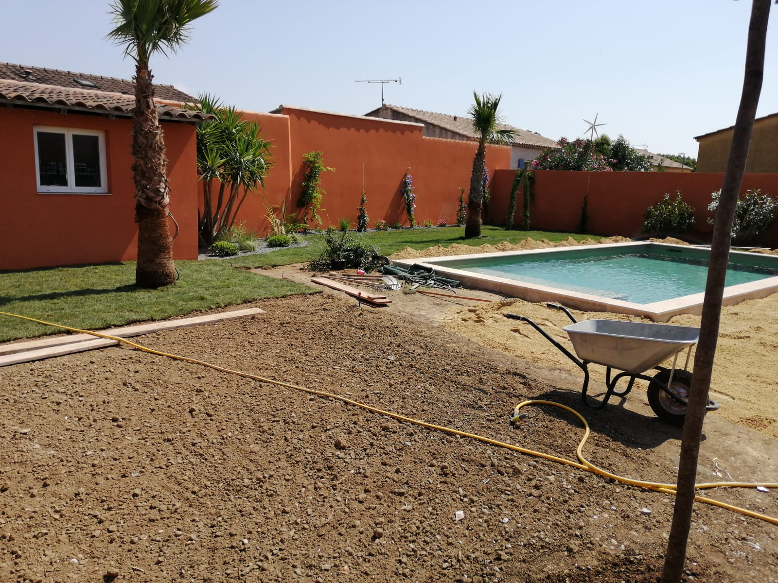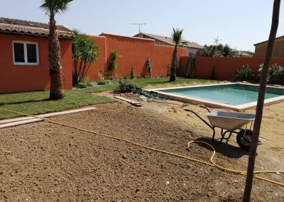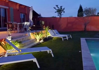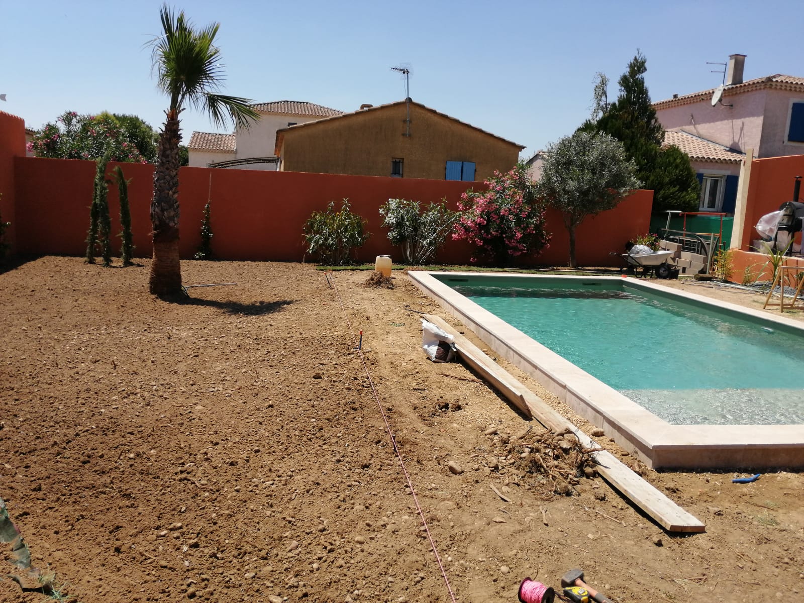 Création de Jardin Le Projet Création d’un jardin avec massif, pas japonais, transplantations d’arbres et éclairage.. Date : 27 juillet 2021 Client : Particulier | Jacou Projet : Aménagement extérieur Un an après À la Livraison Le Chantier En Images