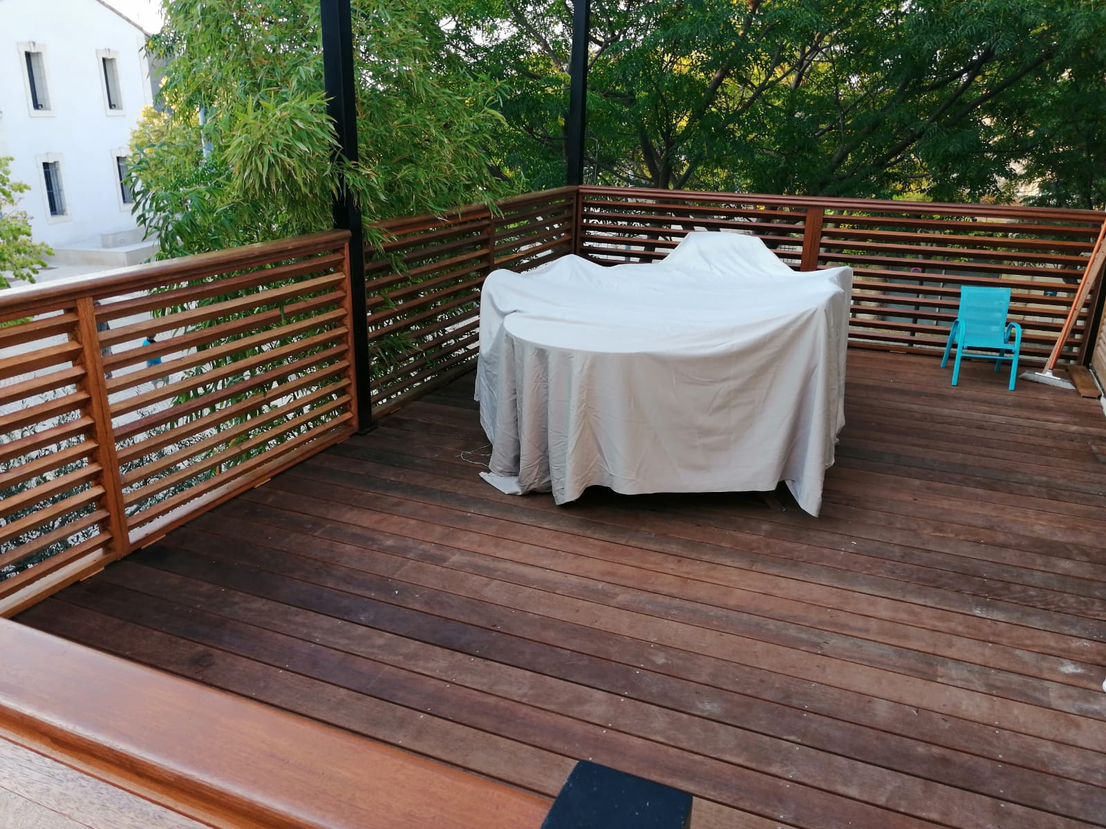 Terrasse en bois sur mesure Le Projet Réalisation d’une terrasse en bois sur mesure et son escalier. Date : 12 septembre 2021 Client : Particulier | Vic-la-Gardiole Projet : Aménagement extérieur À la Livraison Le Chantier En Images
